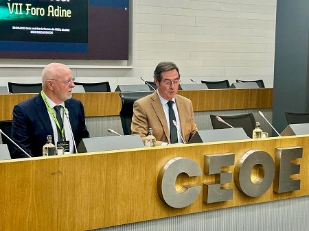 El máximo responsable de los empresarios españoles, acompañado por el presidente de ADINE, Juan Ramón Pérez, dio la bienvenida a los presente al VII Foro anual y recalcó "la unidad alrededor de un sector para darle más fuerza".