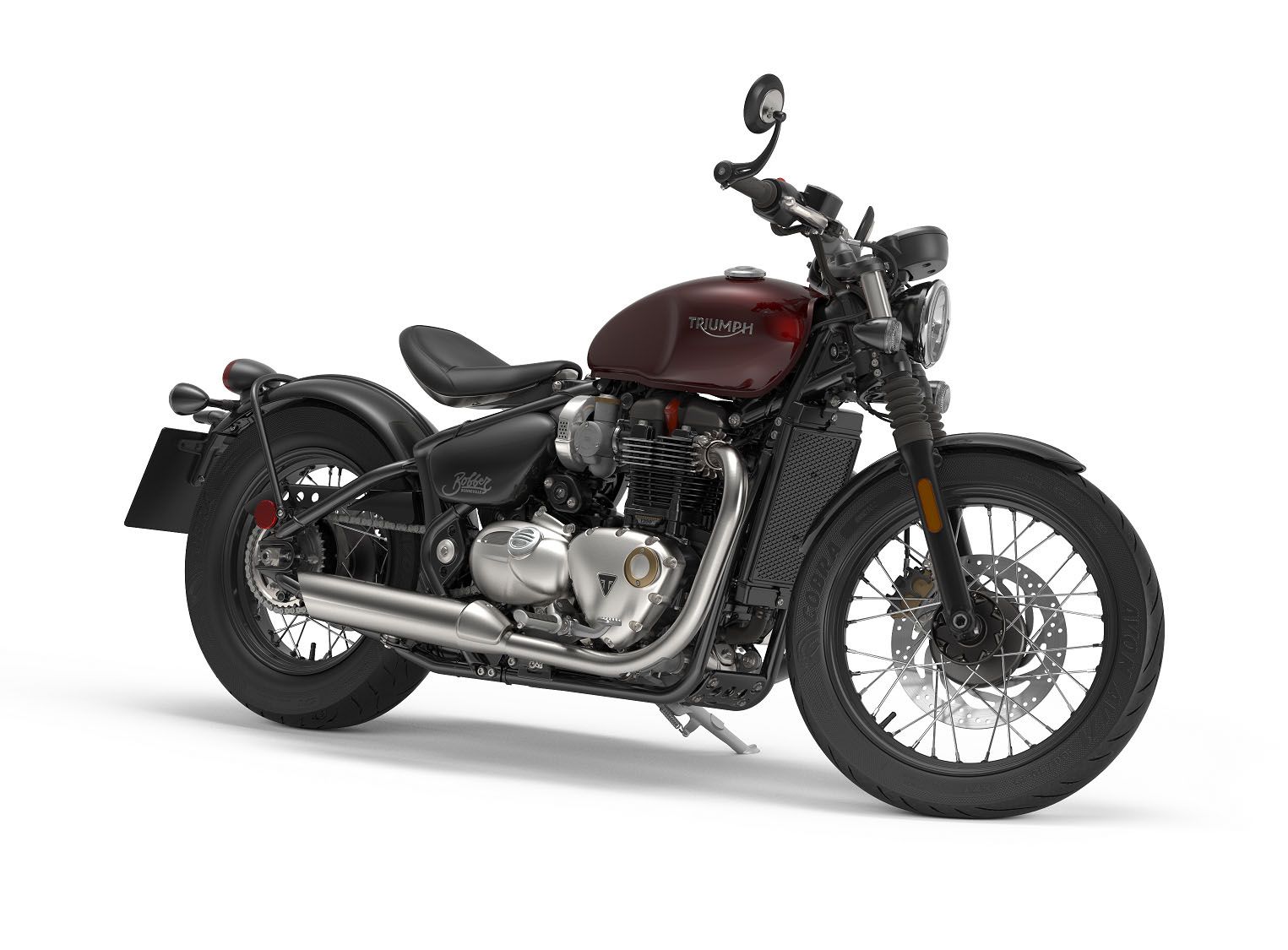 El radical chasis y el estilo de la Bobber demuestran que, gracias a una estrecha colaboración de Triumph con los equipos de desarrollo de Avon, pudo encontrarse una solución de monta perfecta, con el nuevo neumático Cobra dotado de una construcción especial de la carcasa y con materiales para adaptarse a la configuración única de la Bobber.
