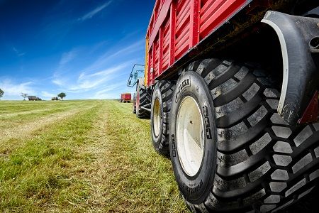 ¿Un ejemplo práctico? Una carga de 6500 kg en un neumático estándar 710 / 70 R 42 requeriría una presión de 2,4 bares, mientras que el mismo peso en un neumático VF con iguales características requiere una presión de solo 1,2 bares.