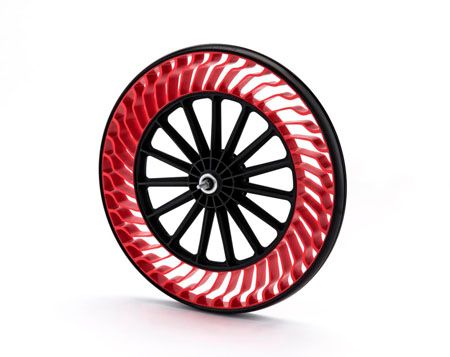 El concepto 'Air Free' es una tecnología que suprime la necesidad de hinchar los neumáticos con aire utilizando una estructura única de radios que se extienden a lo largo de los lados interiores de los neumáticos. Además, las resinas que se utilizan en los radios y en el caucho ayudan a hacer un uso más eficiente de los recursos.