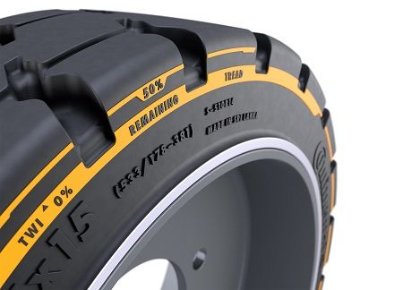 El nuevo indicador de desgaste de la banda de rodadura puede verse en ambos flancos del neumático, lo que permite determinar de una forma más rápida y fácil el momento adecuado para cambiar el neumático. Esto puede reducir los costes operativos generales al maximizar la utilización del neumático y contribuir a una mayor sostenibilidad.