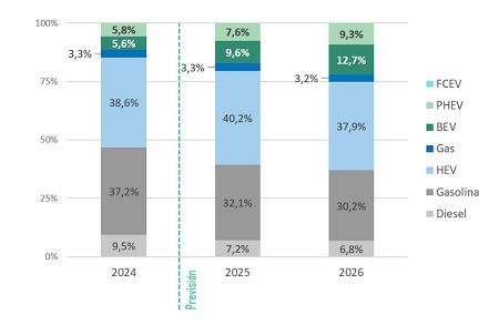 Cuatro de cada diez matriculaciones en 2025 corresponderán a vehículos híbridos no enchufables
