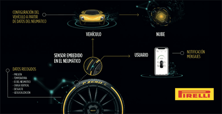 La primera avanzadilla llegó de la mano de Connesso, un nuevo gadget destinado al aftermarket y lanzado en el Salón de Ginebra de 2017. Su funcionamiento es sencillo: un sensor ultraligero integrado en el liner interior del neumático permite recoger toda clase de datos clave de su funcionamiento, como la temperatura, la presión de funcionamiento o el volumen de desgaste, entre otros. A continuación, estos datos se transmiten en tiempo real a la nube, que procesa esta información antes de reenviarla al conductor vía aplicación específica de smartphone.