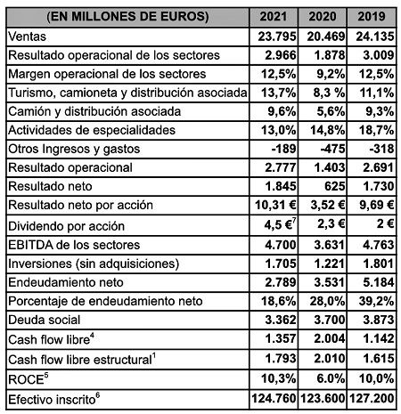 El Grupo Michelin obtuvo un resultado operacional de los sectores de 2.966 millones de euros y un margen en línea con el de 2019, del 12,5%, lo que demuestra una vez más la solidez y la resiliencia de su modelo de negocio.