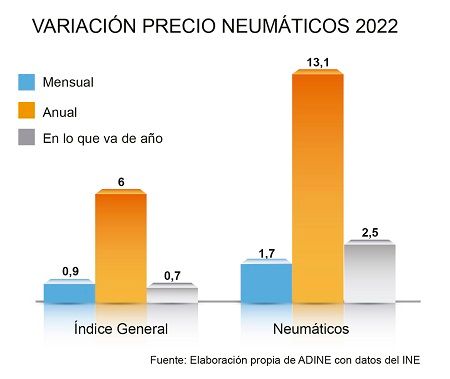Según Óscar Bas, secretario ejecutivo de ADINE, "este incremento se debe principalmente a la subida de los costes de producción, energéticos y del transporte, que no da tregua y hace necesario repercutir dicha subida en el precio final de los neumáticos".