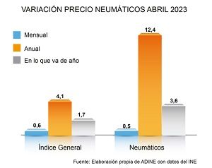 El precio de los neumáticos se ha moderado en abril hasta alcanzar el 12,4%, según un estudio elaborado por la Asociación Nacional de Distribuidores e Importadores de Neumáticos (ADINE) en base a datos del Instituto Nacional de Estadística (INE), que confirma la tendencia a la moderación que se inició el pasado mes de marzo.