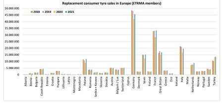 Ventas de neumáticos en Europa en 2021