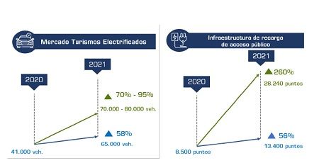 Durante 2021, España ha alcanzado una valoración de 45,9 puntos sobre 100 en el indicador de penetración de vehículo electrificado, que representa un crecimiento de 14,3 puntos respecto al año anterior. De todos modos, aunque el mercado electrificado español ha logrado aumentar su cuota hasta casi el 8% del total de las ventas, todavía se sitúa muy lejos de otros mercados competidores del entorno europeo, como Alemania (26%), Francia (18,3%) o Portugal (19,7%) con mayor penetración de este tipo de vehículos.