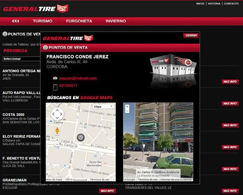 La geolocalización de los talleres especializados que comercializan los neumáticos General Tire, distribuidos en exclusiva por Grupo Andrés, es otra de las singularidades de esta web. El lanzamiento de la web de General Tire refuerza el despliegue en la Península de la marca de neumáticos, perteneciente al Grupo Continental, y líder indiscutible de la tecnología 4x4.