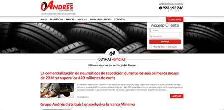 La web corporativa de Grupo Andrés se ha programado acorde a las nuevas necesidades de navegación de tipo “Responsive”, para ofrecer su información de forma más rápida y directa, tanto al usuario profesional del neumático, como al automovilista. La organización de sus contenidos está pensada expresamente para facilitar la consulta desde dispositivos móviles, que ya son utilizados por la mayoría de usuarios de la web y en un alto porcentaje por los clientes profesionales del sector para la adquisición de neumáticos y cámaras.