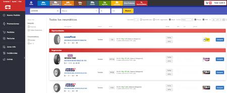 La Plataforma B2B cuenta con un menú más visual e intuitivo, en una home con mayor información útil y dónde los gráficos y la información visual predominan. Las mejoras más destacadas de esta nueva versión son el enriquecimiento de la ficha de producto, con mayor información de los neumáticos; nuevos filtros para facilitar y hacer más ágil la búsqueda de los productos más específicos como búsqueda por primeros equipos y neumáticos con tecnología antipinchazos; opción de visualizar entre los resultados de la medida buscada un índice de carga y código de velocidad superior para disponer en una sola búsqueda de todas las opciones de neumáticos disponibles. Teniendo también la posibilidad de integrar en esa misma búsqueda las medidas equivalentes.