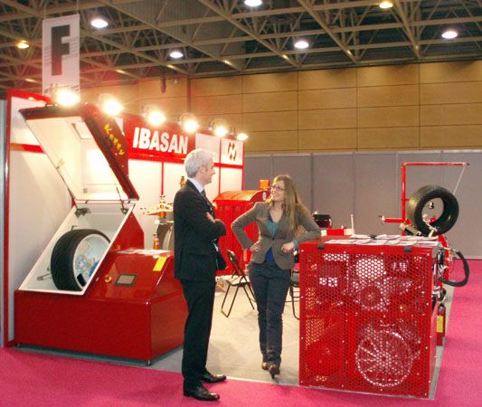 Los más de 100 expositores y visitantes de Pneu Expo 2012 pudieron ver en el stand de Ibasan una amplia representación de sus equipos, de los que destacamos: Lavadora de ruedas Ketty W-5000, Vulcanizadora Latex 16, Vulcanizadora Latex 180, grupo electrógeno Grup Air 2080-I, Compresor Jet Air 2020-I, Abridor verificación de pinchazos AB 110, Jaula de seguridad digital 1018, Carro ergonómico y varios modelos de Despegadores agrícolas e industriales.