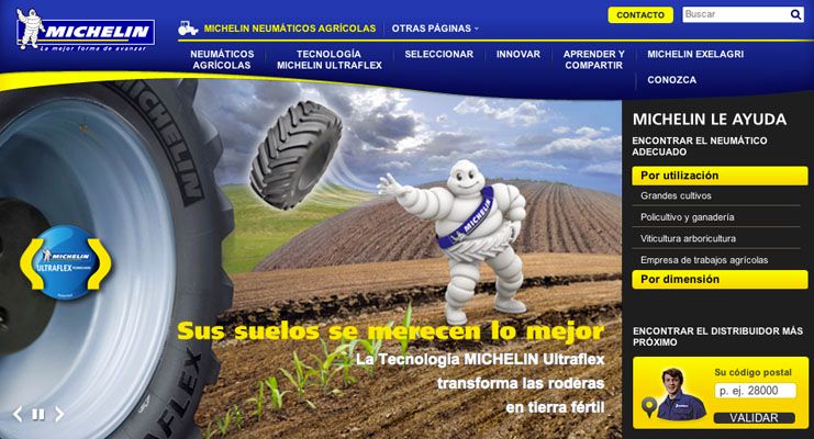 Michelin ha puesto en servicio sus nuevas páginas web dedicadas a los productos y servicios para agricultores y empresas. La primera se lanzó en diciembre de 2011 en Francia. Posteriormente, a comienzos de este año, se presentó la versión para Estados Unidos y, ahora, ya están disponibles las versiones para Europa.
