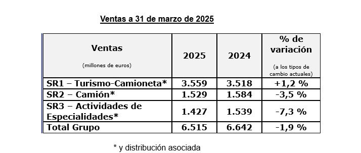En un contexto de elevada incertidumbre geopolítica y macroeconómica, el Grupo Michelin ha registrado unas ventas consolidadas de 6.500 millones de euros en el primer trimestre de 2025, lo que representa un descenso del 1,9% respecto al mismo periodo del año anterior.