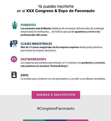 Para poder acceder a la primera parte del XXX Congreso&Expo Faconauto hay que inscribirse.