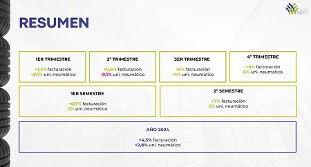 El informe destaca un crecimiento anual del 4,5% en facturación y del 2,8% en unidades de neumáticos, impulsado por una mayor estabilidad en la demanda tras un período de fluctuaciones marcadas en años anteriores. Entre los datos más relevantes del estudio se encuentran: