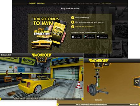 A través de la página también se encuentran disponibles links a apps de juegos gratis de Monroe con el tema 'Simulador de Mecánico de Coche'. Estos juegos retan a los participantes a instalar virtualmente amortiguadores Monroe nuevos en menos de 100 segundos.
