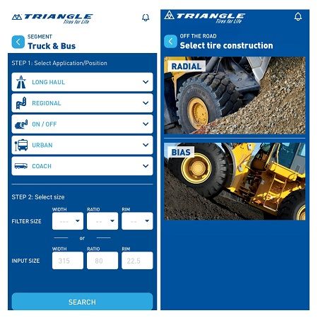 Triangle Tyre lanza una nueva aplicación móvil llamada Triangle Tyre, que funciona como un catálogo con sede en Europa para todas las categorías de productos de Triangle, desde neumáticos de consumer (PCR), neumáticos comerciales y neumáticos para movimiento de tierras.